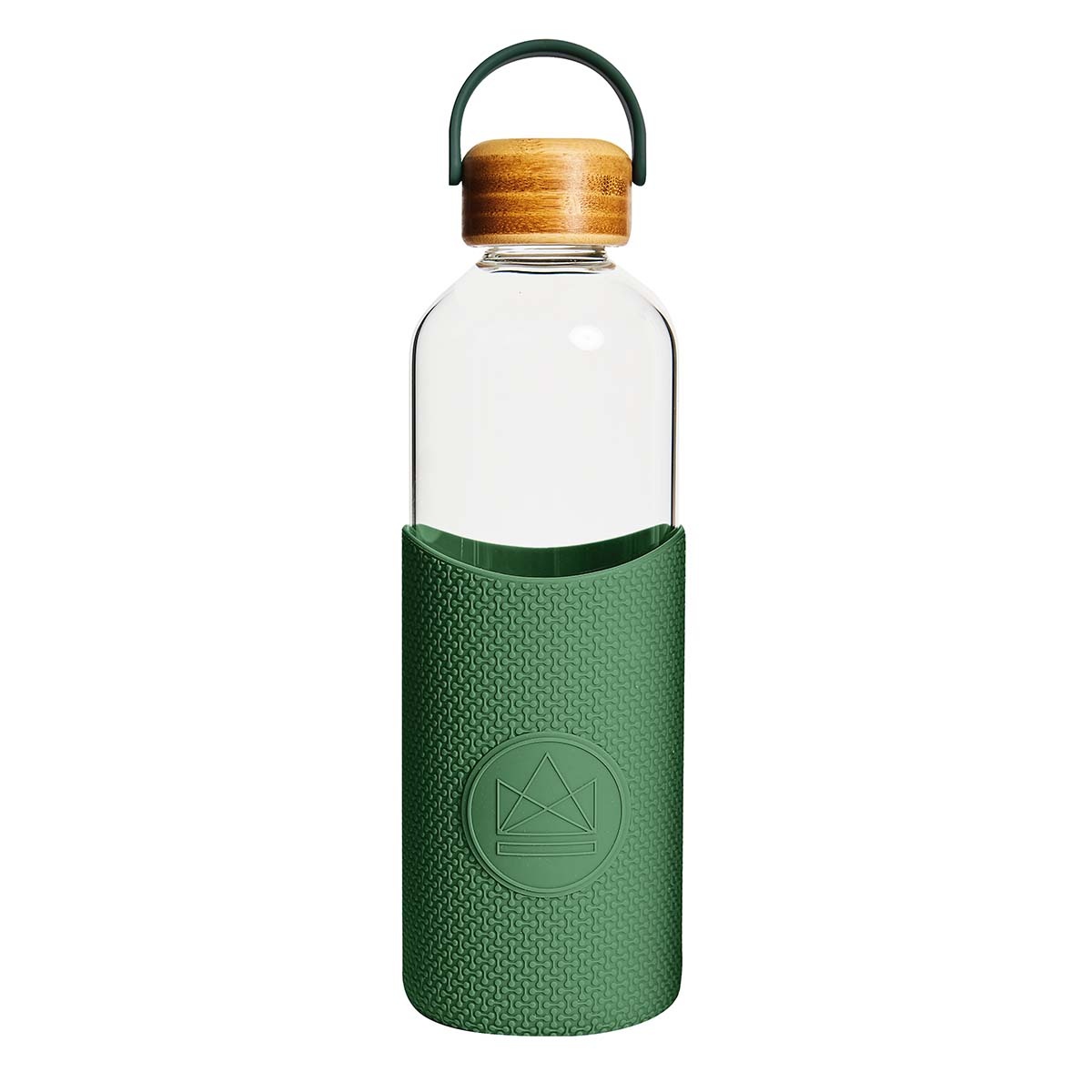 Glass Water Bottle 1l Happy Camper Olive Green Peace With The Wild