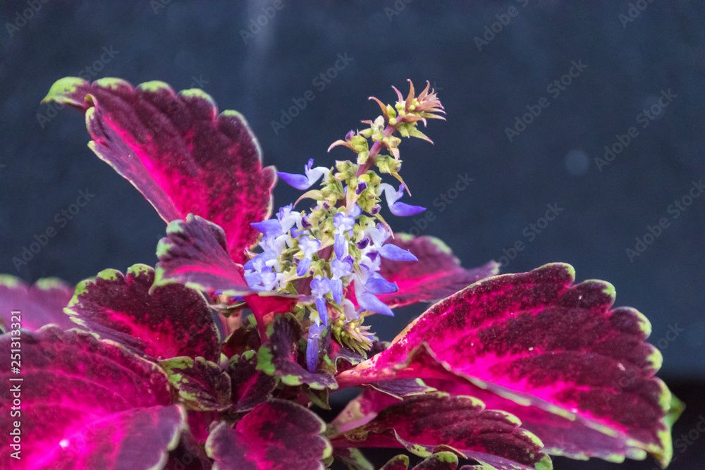 Blooming Coleus Plant With Violet White Flowers Bicolor Purple Green Foliage Plectranthus Scutellarioides Solenostemon Scutellarioides Stock Photo Adobe Stock