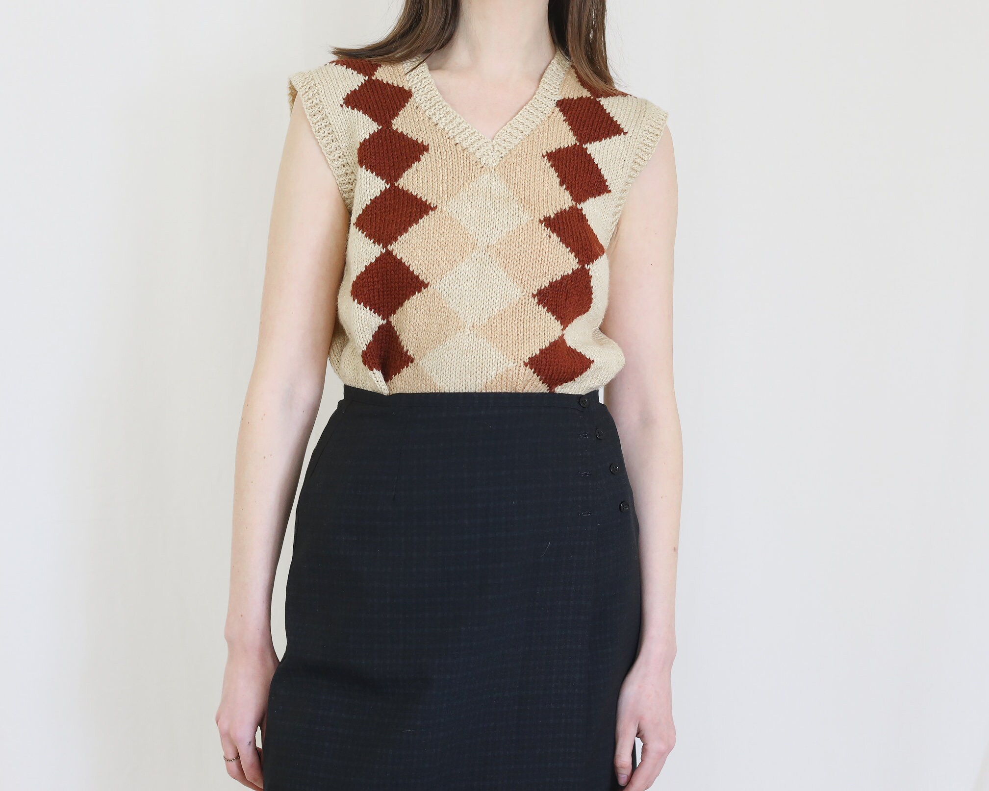 Wmn Wavy Knit Vest Dark Brown Olaf